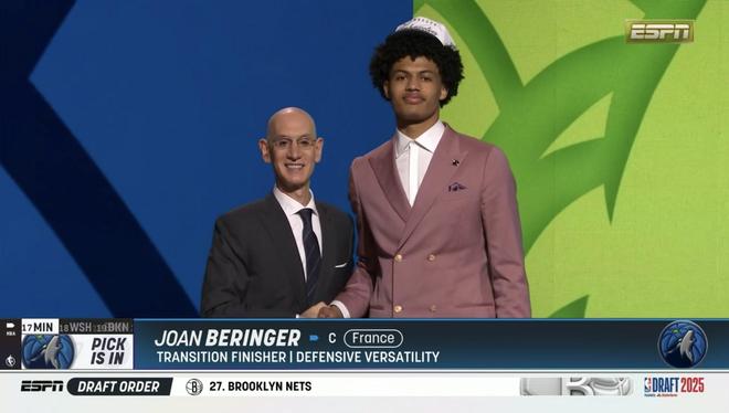 首轮第十七顺位,若昂·贝兰热,来自森林狼